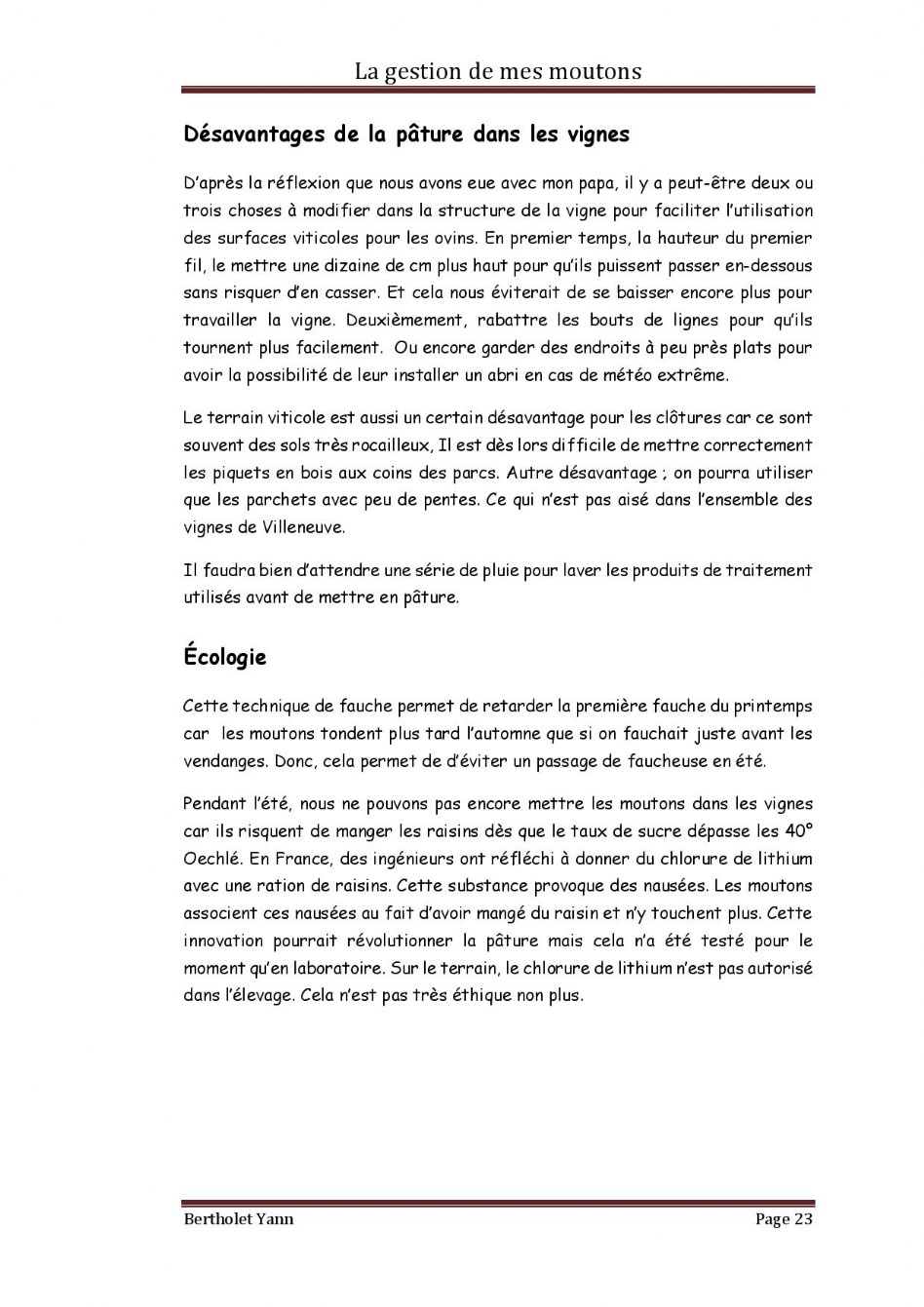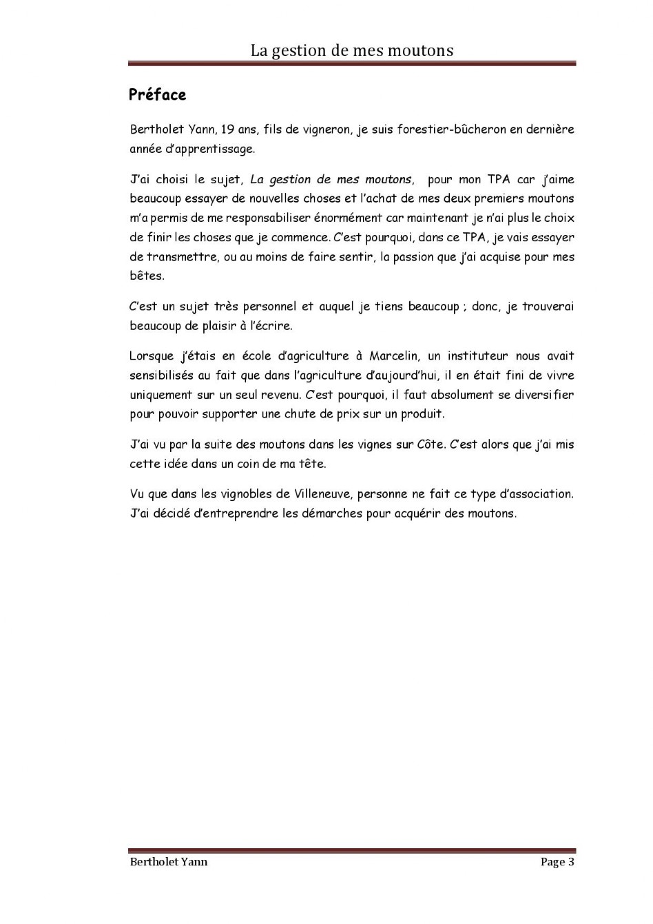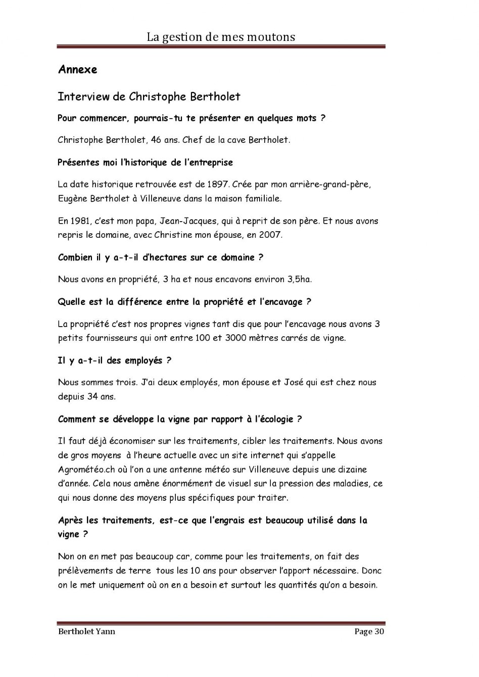 Dossier Moutons - Domaine Christophe Bertholet, Villeneuve
