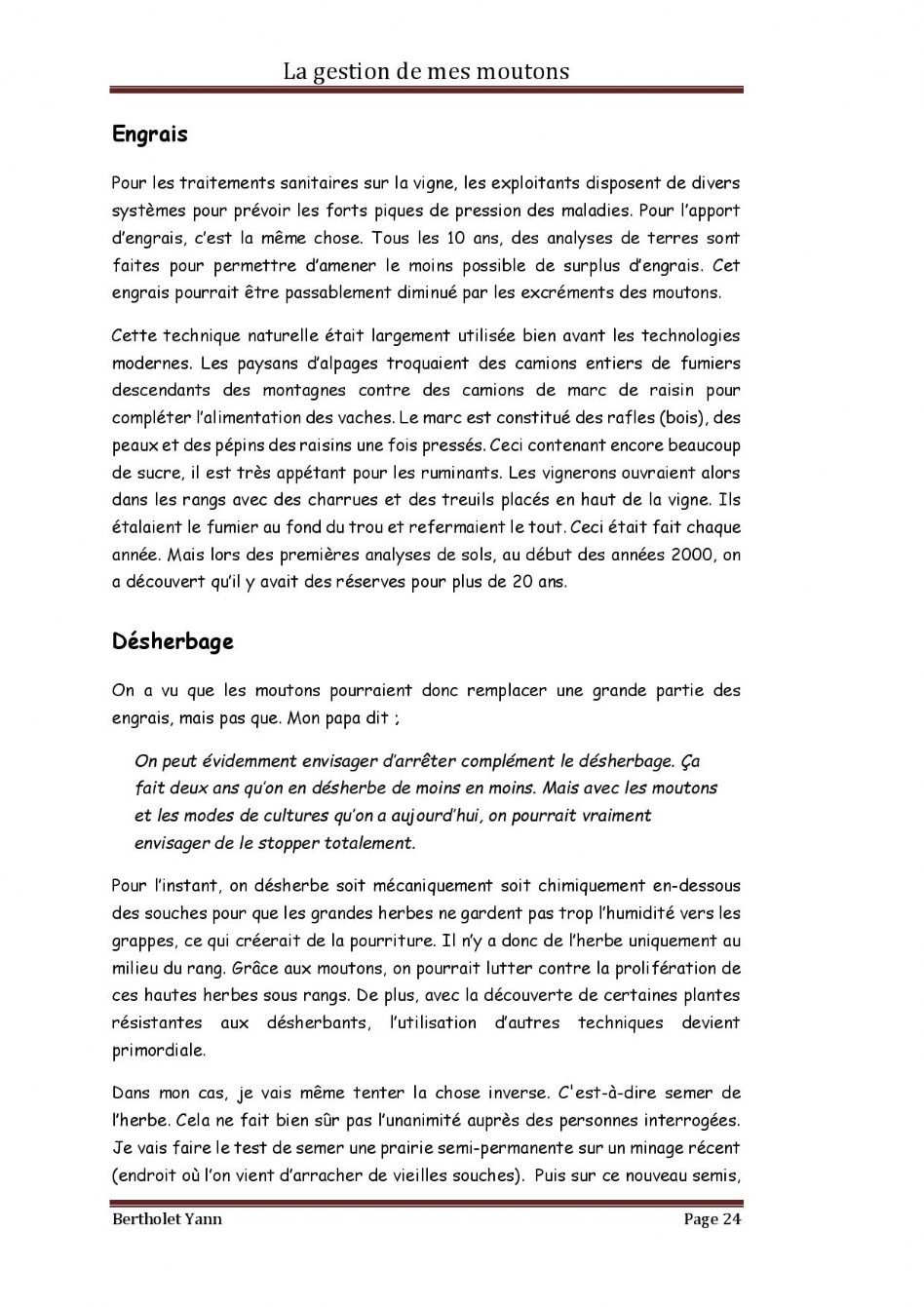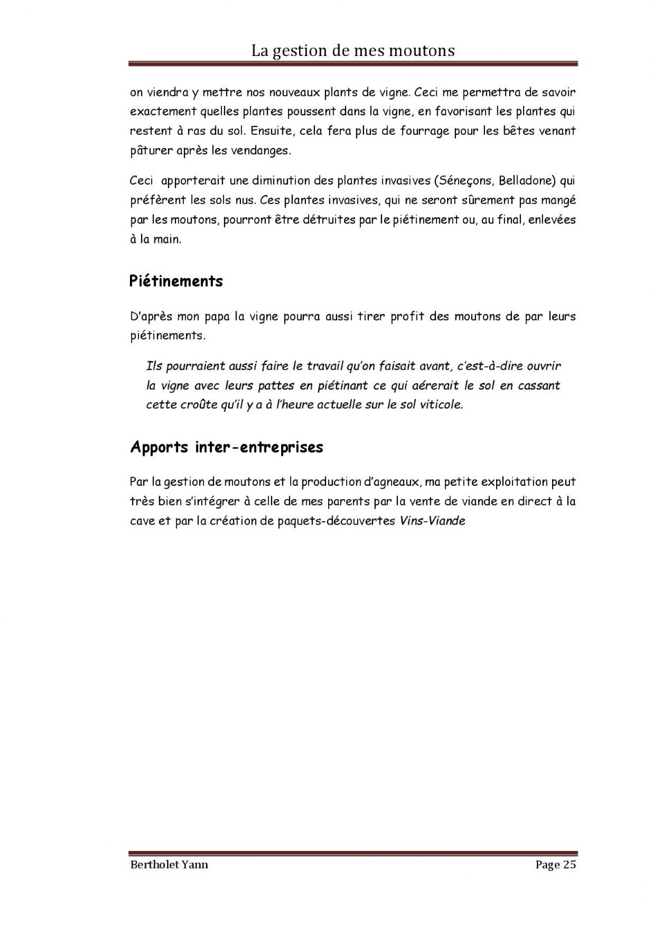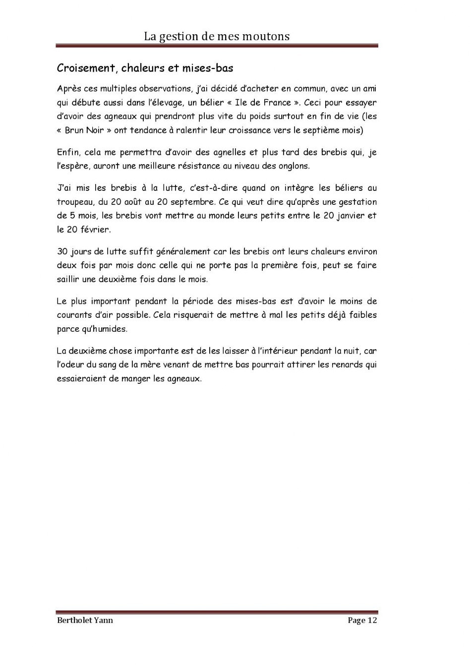 Dossier Moutons - Domaine Christophe Bertholet, Villeneuve